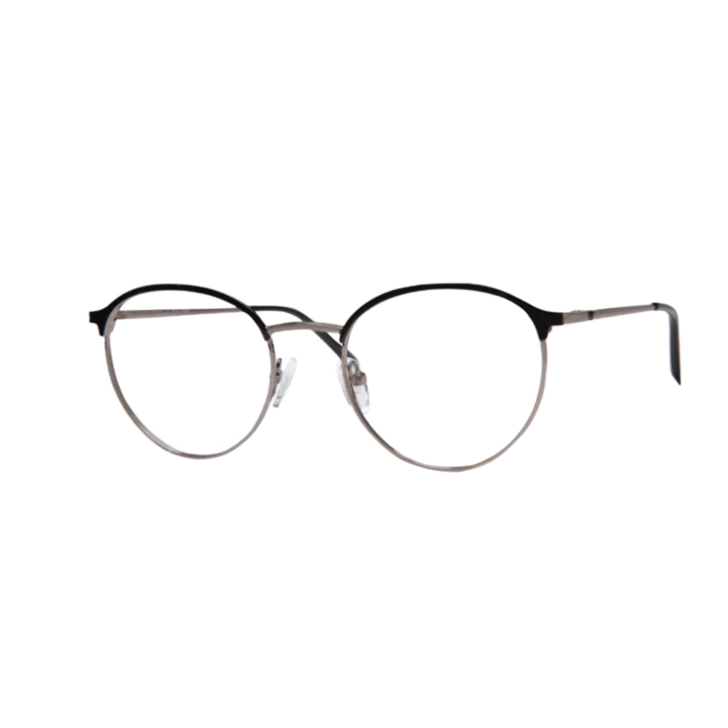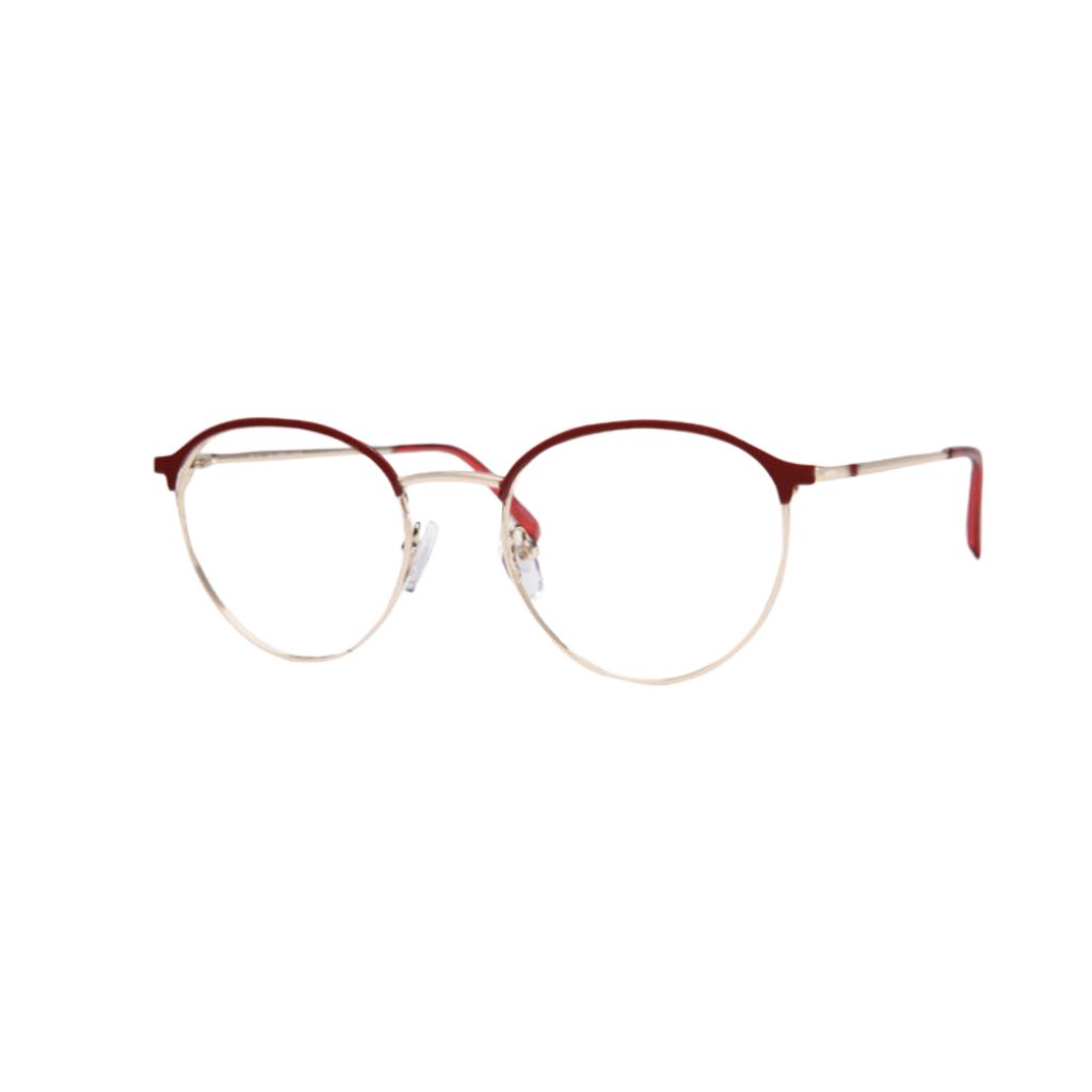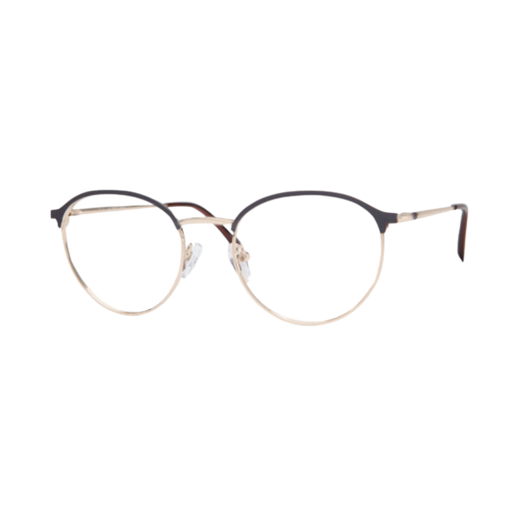 These glasses have a sleek and stylish design, featuring a combination of subtle elegance and modern edge. The thin metal frame comes in a sophisticated gold finish, accented with a touch of black along the top, giving it a bold yet minimalist appearance. The rounded lenses provide a retro vibe, while the adjustable nose pads and slim arms ensure comfort for all-day wear. Perfect for those who appreciate both timeless style and contemporary flair, these frames are versatile enough to complement any look—whether you're dressing up for a formal occasion or keeping it casual.